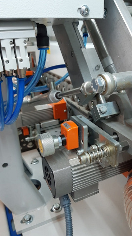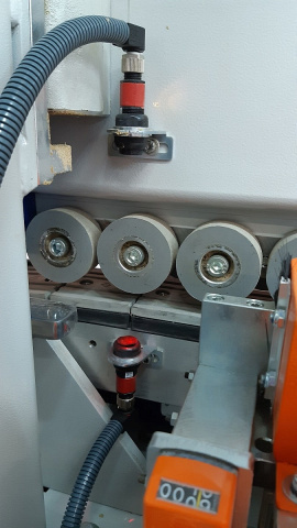 ![]() | Пресс группа Тяжелая зона прижима оснащена главным прижимным роликом диаметра Ø120 и тремя допрессовочными роликами. Длинная зона прижима гарантирует окончательную кристаллизацию клея перед механической обработкой для исключения сдвига кромки и минимизирует клеевой шов, делая его идеальным. С помощью цифрового счетчика регулируется прижим на разную толщину кромочного материала. Усилие пресс группы задается механически, что позволяет качественно приклеить кромочный материал к детали. Значение прижима кромки от толщины отображается на цифровом счетчике. |