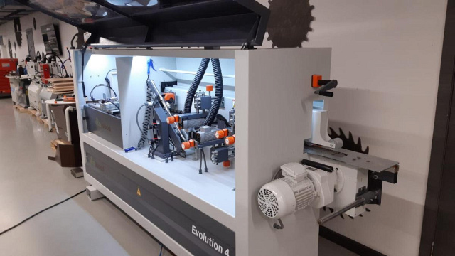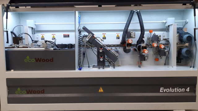 Автоматический кромкооблицовочный станок EcoWood Evolution 4 предназначен для облицовывания рулонного кромочного материала к торцам щитовых деталей при помощи клей-расплава.