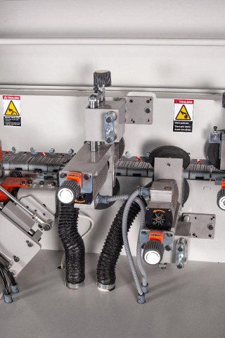 ![]() | Фрезерный узел Производит фрезерование верхней и нижней стороны панели для удаления свесов кромки.2 высокочастотных эл. двигателя.Аспирационные кожухи для удаления стружки.Круглые ручки для настройки положения с механическими цифровыми индикаторами.Ручное отведение узла.Комплект инструмента используемый (R=2) для обработки: тонкая кромка и радиусная кромка.Скорость вращения: 12.000 об.мин. |