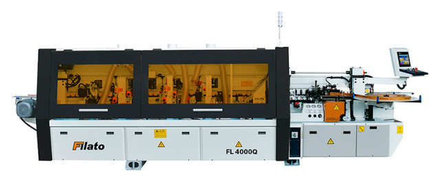 Автоматический кромкооблицовочный станок Filato FL 4000Q предназначен для облицовывания прямолинейных кромок плитных материалов рулонными кромками АБС, ПВХ и полосовым кромочным материалом толщиной до 3 мм.