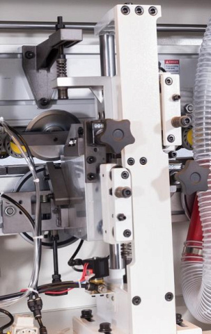 ![]() | Пресс группа Состоит из трех до прессовочных роликов, которые обеспечивают надежную фиксацию кромочного материала на торец заготовки.Диаметр допрессовочных роликов 70 мм.Контроль с помощью пневматики отдельным пневмоцилиндром на каждый ролик.Прижимные ролики подходят для прижатия кромочного материала различной толщины на торец заготовки для минимизации клеевого шва. |