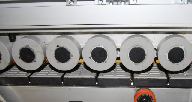 ![]() | Пресс группа Состоит из одного подающего ролика большого диаметра Ø 100 мм и трех до прессовочных Ø 65 мм роликов, которые обеспечивая надежную фиксацию кромочного материала на торец заготовки.Регулировка площадки прижимной группы на толщину кромочного материала осуществляется с помощью цифрового счетчика.Каждый ролик оснащен индивидуальным пневмоцилиндром.Прижимные ролики подходят для прижатия кромочного материала различной толщины на торец заготовки для минимизации клеевого шва. |