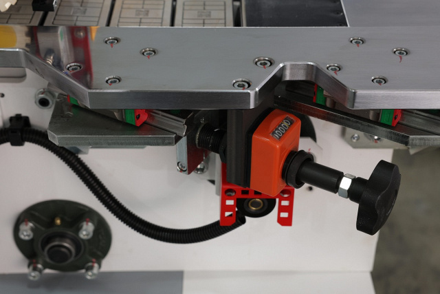 Измеритель толщины детали остановит конвейер при подаче заготовки большей толщины. Защита механизмов подачи и прижимной балки.