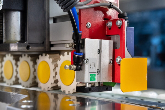 Контроль толщины заготовки расстояния между деталямиПневматический палец контролирует расстояние между деталями и не позволит подать заготовку раньше времени. Защита узла чистовой торцовки.