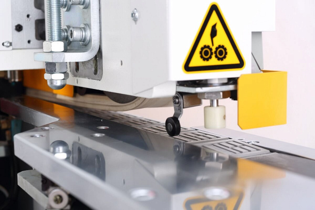 ![]() | Узел прифуговки Алюминиевая прижимная балка изготовлена из усиленного многокамерного профиля высокой жесткости.Две фрезы с алмазными ножами диаметром Ø125 мм высота H35 мм Ø30 мм Z3 + 3 (Опционально до Н60 мм).Два двигателя противоположного вращения с автоматическим подводом/отводом в зону обработки убавляются с помощью пневмоцилиндра.Направляющие HIWIN с автоматической системой смазки.Мощность двигателей 2 х 3,7кВт; Частота 200 Гц; Скорость вращения: 12 000 об/мин.Регулировка по высоте, позволяет максимально использовать весь ресурс инструмента.Узел полностью закрыт пылезащитным кожухом. |