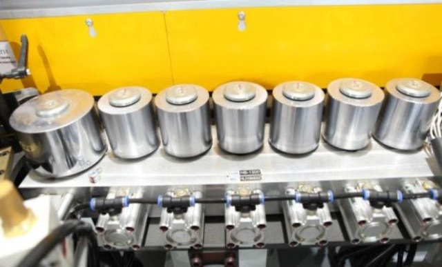 ![]() | Пресс-группа Приводной ролик, диаметром 100 мм охлаждает кромку после нанесения клея. Скорость вращения синхронизирована со скоростью подачи конвейера.6 стальных дожимных ролика диаметром 70 мм.Каждый ролик имеет индивидуальный пневмоцилиндр.Четыре ролика – конусные с противоположным углом наклона, для поджима кромки и минимизации клеевого шва.Два ролика – цилиндрические, для финишного дожима кромки перед обработкой. |
