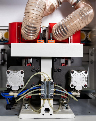 Резиновые ролики имеют малый шаг и большую площадь контакта. Благодаря этому плотно прижимают заготовки, обеспечивая их перемещение без смещения и точность обработки кромки.
