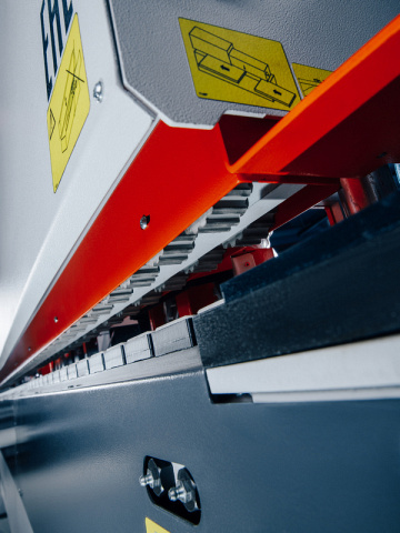 На входе детали установлен датчик, который фиксирует начало и конец детали и с помощью энкодера, установленного на валу транспортера, с высокой точностью определяет, в какой момент времени должен срабатывать каждый узел станка.
