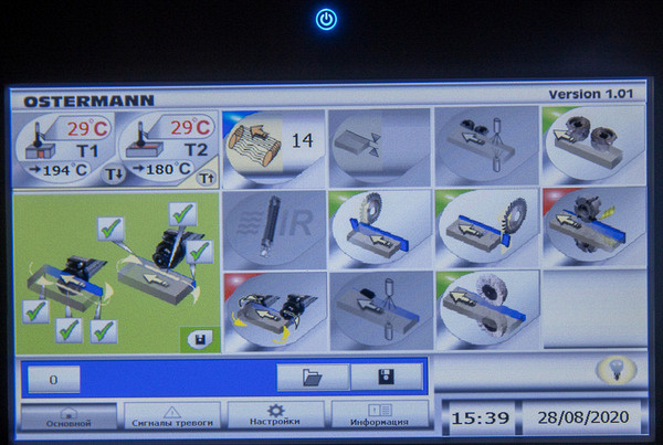 ![]() | Панель управления Экран дисплея TOUCH SCREEN 7" отображает настройки и рабочие параметры: температуру клея, индикацию работы узлов станка;Счетчик длины кромки, количество обработанных деталей, кол-во отработанных часов - полная производственная статистика без дополнительных трудозатрат;Описание аварийных сигналов и устранения неисправностей на русском языке - быстрота устранения неисправностей, минимальное время простоя станка. |