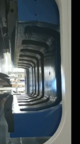 Панелегиб имеет два комплекта гибочного инструмента: верхний и нижний, которые могут реализовать гибку сположительнымиотрицательнымуглом, радиусный гиб и прижимной модуль с автоматической регулировкой длины прижима, обеспечивающий эффективную и точную гибку заготовок сложного сечения.
