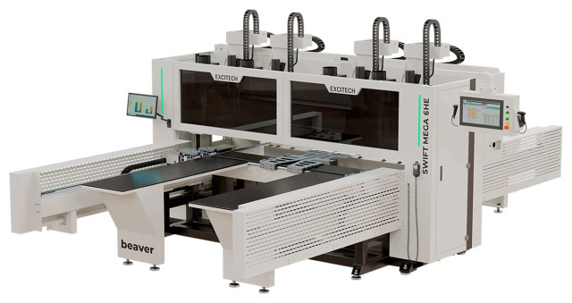 Beaver SWIFT MEGA 6HE - это современный высокопроизводительный шестиголовый сверлильно-присадочной центр с ЧПУ, предназначен для высокоточного сверления сквозных и глухих отверстий в торцах и плоскостях мебельных щитов с 6 сторон, а также выборки пазов при помощи пазовальных пил и фрезерной обработки с помощью четырёх фрезерных агрегатов (2 сверху + 2 снизу). Центр обеспечивает сверление всех карт присадки за одну установку детали, а также имеет две независимые рабочие зоны и поддерживает одновременную пакетную обработку двух деталей.
