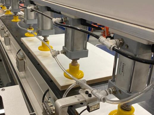 ![]() | Обработка деталей Присадка и выборка пазов выполняются с помощью двух основных шпинделей мощностью 2,2 кВт, 18 000 об/мин. |
