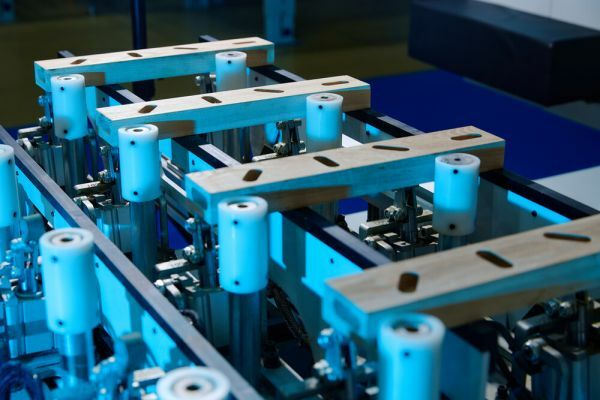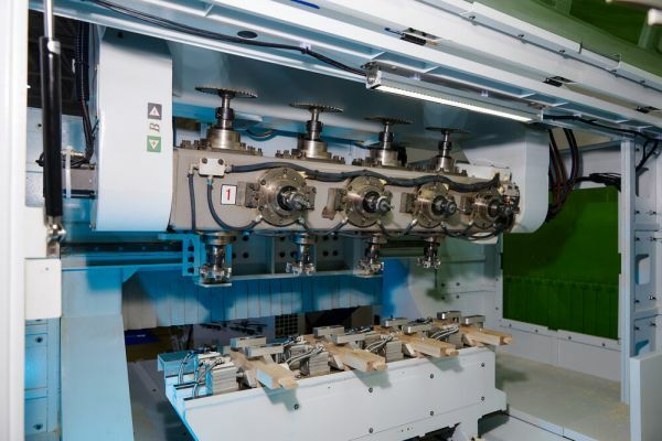 Оснащён восьми шпинделями для использования четырёх типов инструментов обрабатывающих каждую заготовку.