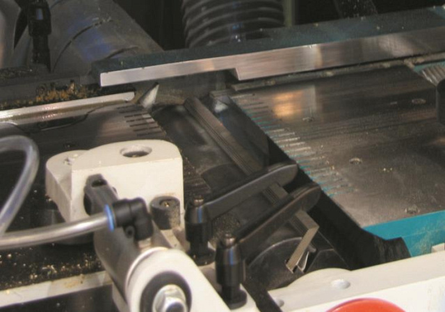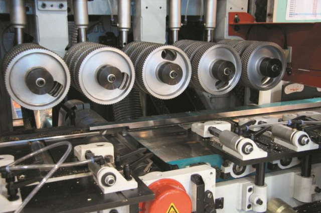 ![]() | Контропоры Гидрозажимные контропоры на всех горизонтальных шпинделях позволяют устанавливать на станок тяжелый инструмент для профилирования бруса естественной влажности шириной до 350 мм. |