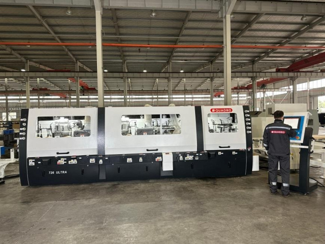 QUADRO 726 SAW Ultra  Массивная база станка с разнесенными шпиндельными узлами  Вес станка 13 тонн, а длина станка около 6 2 м, на	70%	больше классического четырехстороннего станка  Благодаря таким параметрам станок позволяет избегать любых вибрац...Массивная база станка с разнесенными шпиндельными узлами