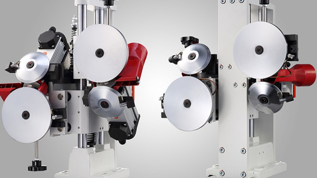 ![]() | Узел радиусного циклевания Точность позиционирования заготовки за счет копиров большого диаметра Ø 180 мм по плоскости с верху и с низу и конусных копиров Ø 120 мм по торцу заготовки.Система охлаждения ножей сжатым воздухомУзел оснащен аспирационными патрубками. |