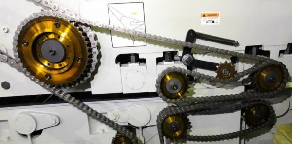 ![]() | ЦЕПНОЙ ПРИВОД ПОДАЮЩЕГО КОНВЕЙЕРА И РОЛИКОВСтанок имеет мощную цепную систему привода подающего конвейера, подающих роликов, с системой натяжения. Такой привод обеспечивает стабильную работу станка при тяжелых условиях эксплуатации. |