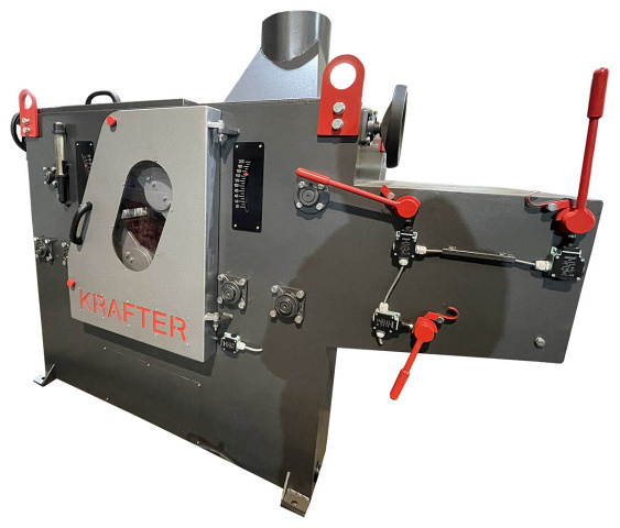 Два верхних подающих вальца осуществляют прижим бруса собственным вес KRAFTER M/DOUBLEом и прижимными пружинами. Регулировка высоты верхних подающих вальцов осуществляется вручную с помощью маховика.