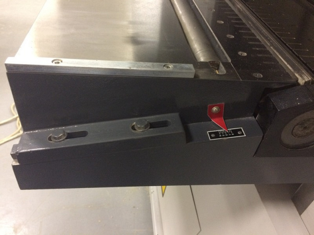 ![]() | Нижний (фуговальный) ножевой вал Привод нижнего ножевого вала осуществляется от отдельного двигателя. Настройка глубины съема осуществляется с помощью винта на передней части стола. Отображение размера по миллиметровой шкале. |