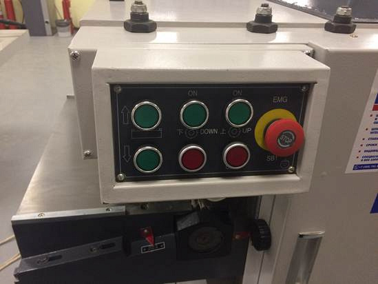 ![]() | Пульт управления На пульте расположены кнопки включения/выключения верхнего и нижнего ножевого вала, подъема/опускания стола и кнопка аварийного останова. Кроме MB 204FW. |