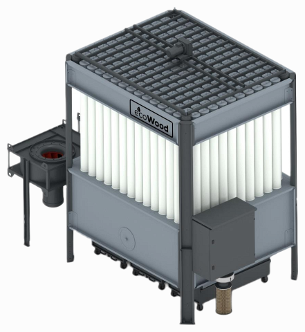 EcoWood FR-20  Пылесборная тележка (комплектация 2 и 4)  Фильтр комплектуется пылесборной тележкой, объемом 0,3 м³, в зависимости от модели, от одной до трех штук Пылесборная тележка (комплектация 2 и 4)