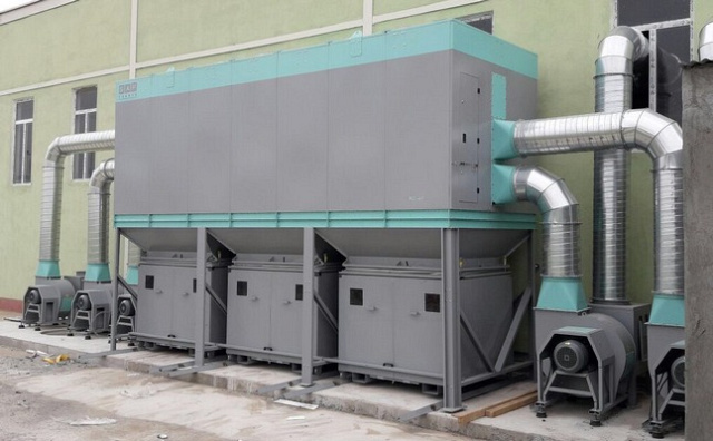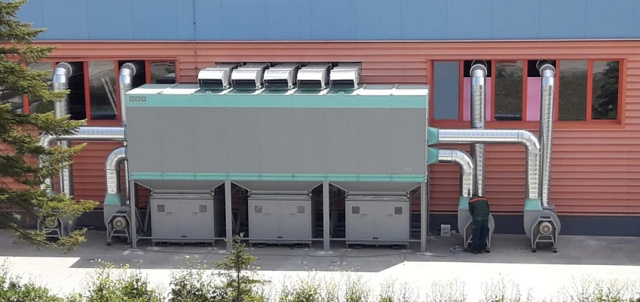Загрязненный воздух сначала попадает в камеру, которая отделяет от потока воздуха крупные опилки и стружку и направляет их в накопители. Затем поток воздуха проходит через блок рукавных фильтров, доочищается и возвращается обратно в цех или сбрасывается в атмосферу.