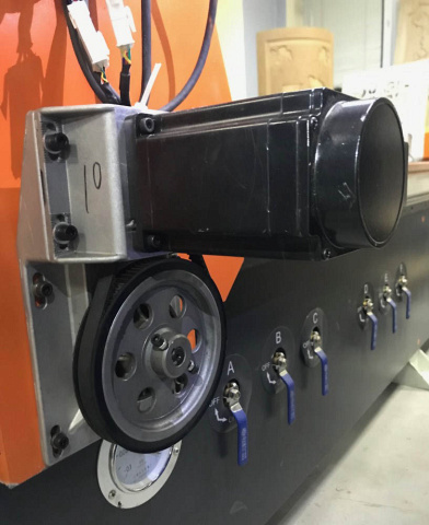 ![]() | Гибридные электродвигатели с энкодерами (сервогибриды) Установленные на каждом узле для перемещения по всем осям. За счет интегрированных энкодеров обеспечивается точное позиционирование портала и шпинделя в соответствии с заданной программой. Крутящий момент от электродвигателей на ведущие шестерни, а также на ШВП передаётся посредством ременных редуктора, которые в свою очередь, обеспечивают необходимый коэффициент редукции и необходимое усилие. |