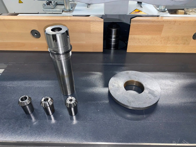 ![]() | Шпиндель под концевой инструмент В комплекте со станком поставляется шпиндель под концевой инструмент с креплением под цангу. Цанги под диаметры хвостовиков 8 / 10 / 12 мм входят в комплект поставки. Ключ для съема шпинделя и ключ для зажима цанг поставляются также в комплекте со станком. |