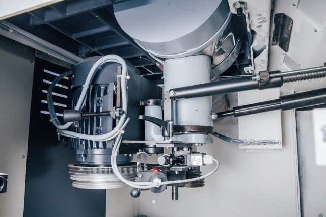 ![]() | Моторный отсек Привод шпинделя от мощного двигателя посредством 2-х клиновых ремней. Литой чугунный стол с ребрами жесткости отлично гасит вибрации и обеспечивает точность обработки и жесткость конструкции на всем периоде эксплуатации. Шпиндельная чаша закрыта защитным кожухом для лучшего удаления стружки через подведенный патрубок, что исключает ее попадание в моторный отсек. |