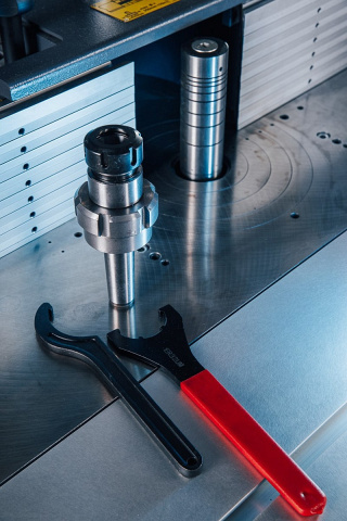 ![]() | Шпиндель под концевой инструмент В комплекте со станком поставляется шпиндель под концевой инструмент с креплением под цангу ER32. (Цанга и инструмент в комплект поставки не входят). Ключ для съема шпинделя и ключ для зажима цанг ER32 поставляются в комплекте со станком. |