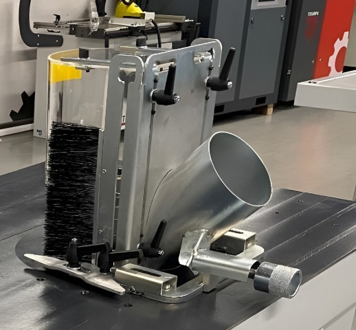 ![]() | Аспирационные патрубки В станке предусмотрено 2 выхода под аспирацию Ø 120 мм. Нижний аспирационный патрубок расположен под столом, для более эффективного удаления стружки из шпиндельной чаши. Верхний патрубок находится в защитном кожухе шпинделя. |