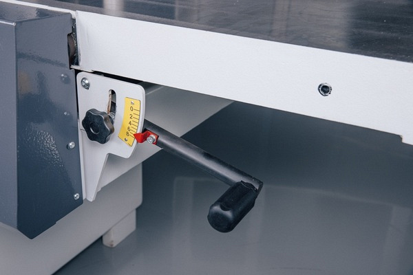 ![]() | Регулировка стола рычагом Выставление толщины съема материала удобно осуществляется рычагом по линейке. Съем до 8мм. Отображение толщины съема с помощью флажка по шкале. |