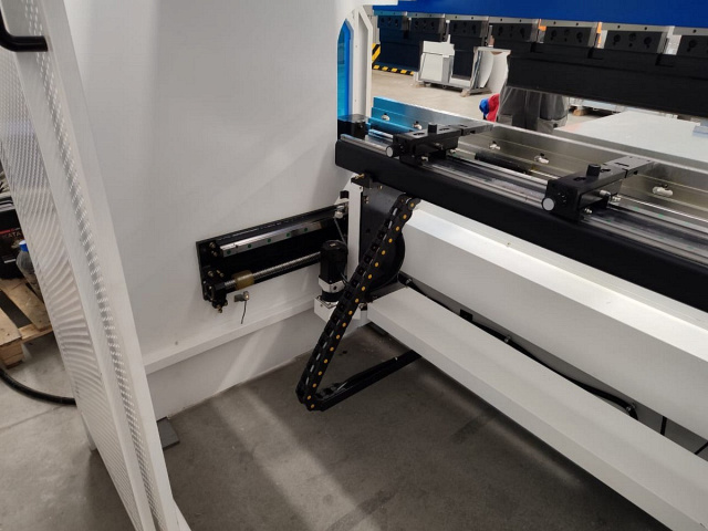 С автоматическим перемещением по оси X имеет ход 750 мм. Перемещение заднего упора осуществляется по линейным направляющим посредством высокоточной шарико-винтовой пары и сервомотора.