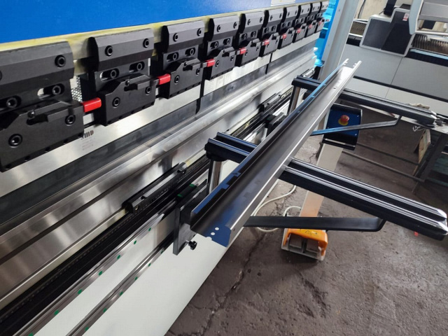 Необходима при гибке изделий длиной более 2 м для исключения разницы углов по всей длине заготовки. Моторизованная система работает в автоматическом режиме. Параметры работы просчитываются системой ЧПУ в зависимости от введенных параметров заготовки и используемого инструмента.