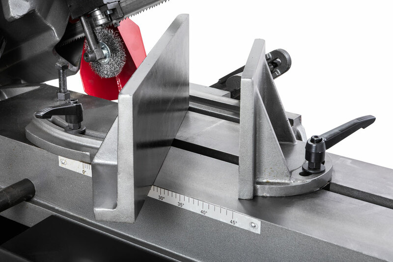 - Большой маховик тензометра для удобного натяжения пильной ленты