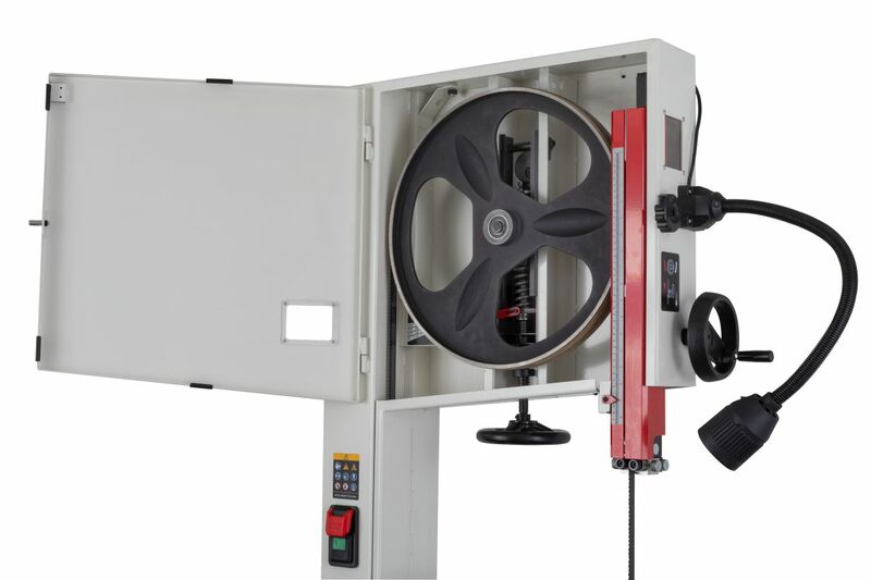 JET JWBS-18SFX-T 400 В – новинка 2025 г. Абсолютно новая ленточная пила для профессионального применения. Ее характеризуют несколько основных преимуществ. Это мощная, полностью сварная рама, большой чугунный, высокоточный рабочий стол, чугунные приводные шкивы компьютерной балансировки, возможность установки пильных полотен шириной вплоть до 32мм, система тормозов мгновенной, аварийной остановки пиления, быстрое ослабление пильного полотна для его замены. Все это очень важно тем, кому нужен универсальный, профессиональный станок. JWBS-18SFX может работать сутками напролет. Параллельный упор тоже объединяет несколько преимуществ. Направляющий профиль может быть установлен в обеих плоскостях, вертикально или горизонтально. Это позволит с комфортом работать над высокими и совсем тонкими заготовками. Высота самого профиля обеспечит комфорт при пилении больших деталей. Квадратная, толстостенная труба в основе направляющей даст нужную жесткость конструкции упора целиком.