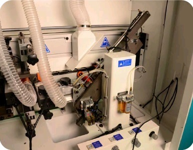 Клеенаносящий узел имеет тонкую регулировку которая позволяет выставить нанесение клея для любого типа кромочного материала.