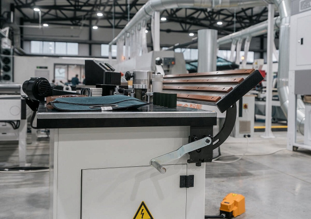 ![]() | Предварительная обрезка кромочного материала (гильотина) Предварительная обрезка выполняется ножом, который перемещается пневмоцилиндром по направляющим. Гильотина управляется автоматически с помощью концевого выключателя для прямых деталей или счётчика длины кромки для деталей с изгибами. Это позволяет достичь минимального припуска с каждой стороны детали и значительно облегчает работу оператора на станке. |