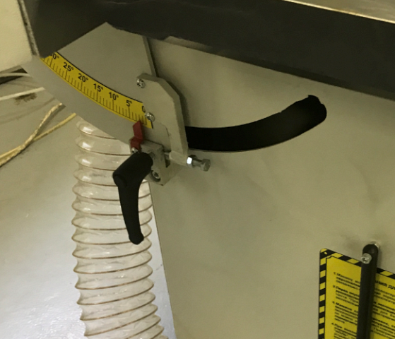 ![]() | Наклон шлифовального узла Система наклона шлифовального узла, применяемая при шлифования кромок под углом, снятия фасок на изделиях. Имеет шкалу для точного выставления угла. |
