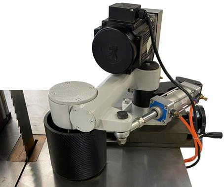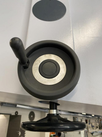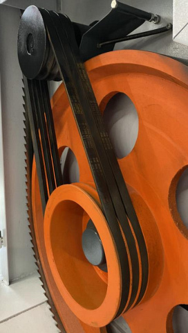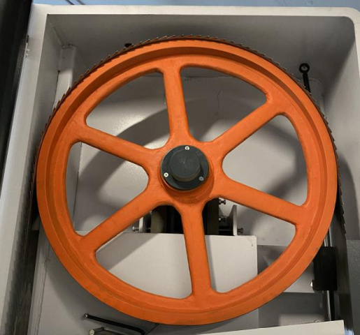 ![]() | Регулировка шкивов На верхнем шкиве предусмотрен вертикальный ход для натяжения и наклон для предотвращения сползания пильного полотна, в зависимости от его ширины. Ленточное полотно подбирается в диапазоне от 60 до 80 мм. В комплекте со станком поставляется ленточное полотно с напайками(стеллит) шириной 75 мм. |