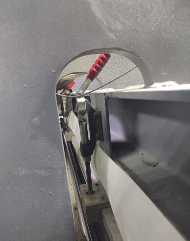 ![]() | Механизм загрузки/выгрузки На пресс установлен привод перемещения загрузочного стола управляемый электронным инвертором обеспечивает их плавную подачу, что исключает сдвигание листового облицовочного материала, наложенного на заготовку при сборке прессуемого пакета. Перемещение стола происходит по закаленным цилиндрическим направляющим. |