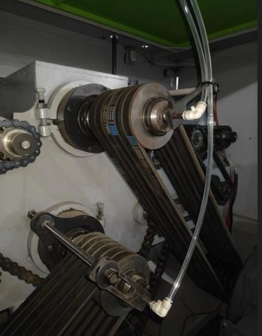 Водяное охлаждение дисковых пил – позволяет очищать пилы от смолы и предотвращают их перегрев, продлевая срок службы инструмента. В пильных валах предусмотрены отверстия, через которые жидкость подается на дисковые пилы.