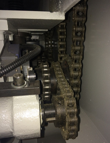 Привод подающих роликов осуществляется от отдельного двигателя 1,5 кВт через червячный редуктор посредством цепи. Скорость подачи регулируется вариатором.