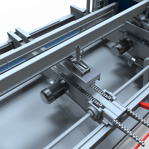 ![]() | Цепная система подачи с упорами Состоит из одно лучевого на боковых пилах и двухлучевого на центральной пиле цепного транспортера с упорами. Такая система дает точную и эффективную подачу заготовки, а также гарантирует прямолинейность распиловки, так что на выходе получаются точные геометрические размеры экспортных пиломатериалов. |