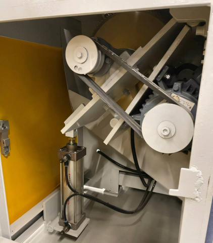 ![]() | Торцовочный узел После достижения необходимой длины заготовка торцуется в размер пильным диском с нижним подъёмом. При помощи педали обеспечивает безопасность оператора в процессе работы. |