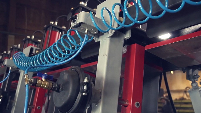IRONMAC Press 200/12HP  Пневматические откатные фронтальные прижимы  Удобно и быстро устанавливаются и автоматически с помощью кнопки зажимают пакет на необходимое усилие Пневматические откатные фронтальные прижимы
