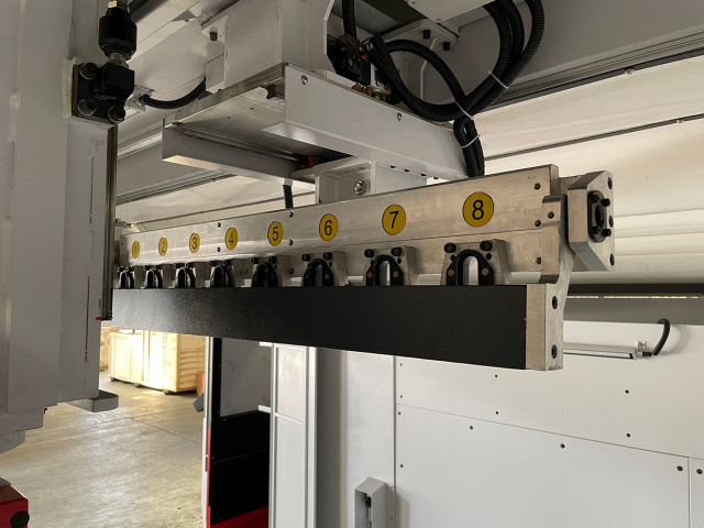 Установлен в нижней части портала, чтобы сократить время смены инструмента и тем самым ускорить процесс обработки. Магазин инструментов оснащен откидным пылезащитным кожухом, который эффективно обеспечивает чистоту инструмента.