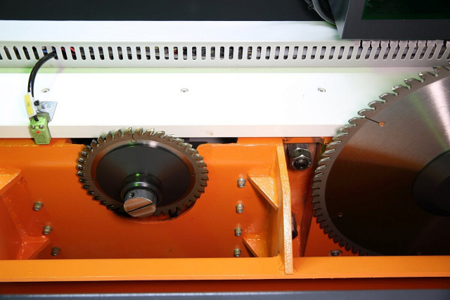Пильная каретка оснащена основной и подрезной пилой и базируется на прочной стальной конструкции. Привод пил осуществляется от отдельных двигателей.