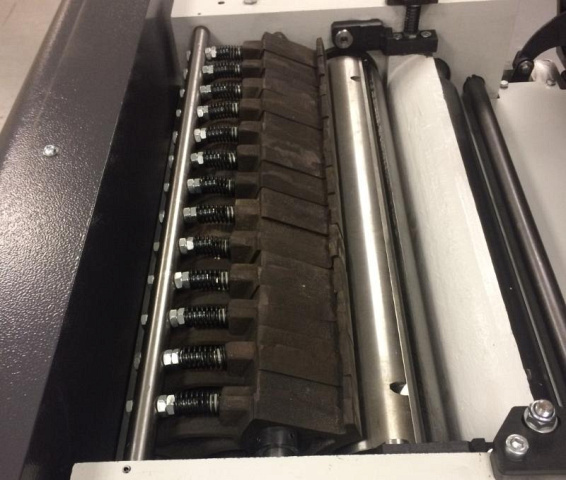 ![]() | Секционные прижимы Перед ножевым валом заготовку прижимают к столу подпружиненные секционные независимые прижимы. Установлены они после подающего секционного вала и могут настраиваться на разное усилие, в зависимости от обрабатываемого материала. Благодаря этому обеспечивается высокое качество обработки. |