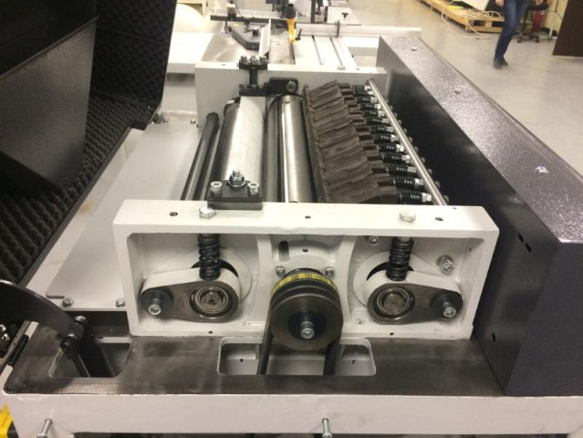 ![]() | Ролики в столе Приводные ролики в столе имеют удобную настройку вылета по высоте от 0,1 мм до 1 мм, что позволяет настроить станок под обработку любого материала. Привод вальцов от двигателя подачи посредством цепи. |